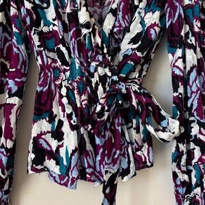 BA&SH Gato Wrap Blouse XS Floral Ruffle Ecru