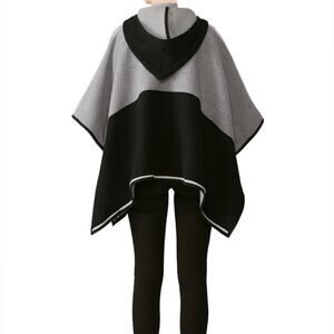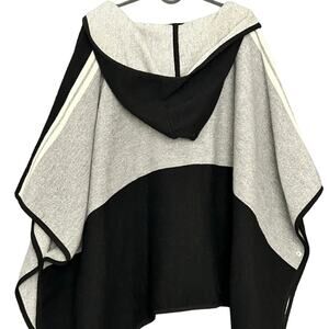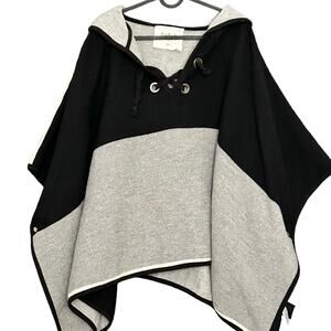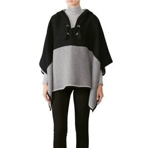BA&SH Lady Cape Colorblock Poncho Black & Grey Lace Up Neckline Wool Blend-OS