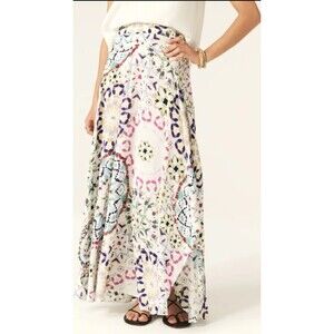 BA&SH Lukas Maxi Skirt White Floral And Geometric Print size EU 38 US M