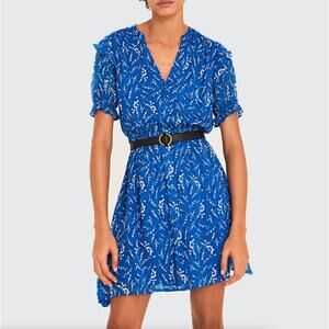 BA&SH Matcha Floral Print Mini Dress Cobalt Blue {G44}