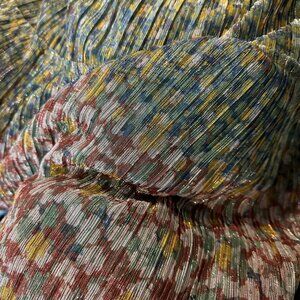 Multicolor floral print with golden thread zip closure. Waist: 28”; Hip: 33”; Length: 35.5”