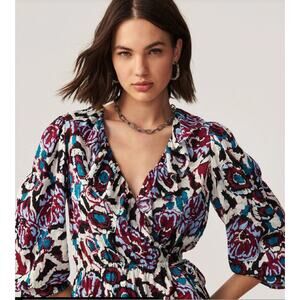 BA&SH NWT Evereve Gato Abstract Side Tie V-Neck Blouse // M