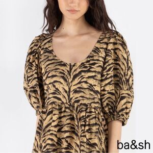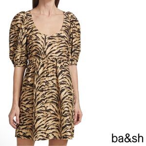 BA&SH **NWT** Zola Puff-sleeve Linen-blend Tiger Print Mini Dress