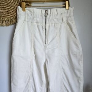 BA&SH, New, OMNY High Waisted Off White O-Ring Zip Front Tapered Crop Trouser Pants, Size 0