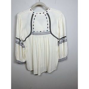 BA&SH PLUME EMBROIDERED Size 3/ Large Boho BLOUSE In Ecru Cream 3/4 Sleeve
