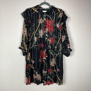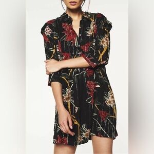 BA&SH Paprika Patty Floral Mini Dress Metallic Stripe Half Sleeve Shift Sz M