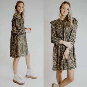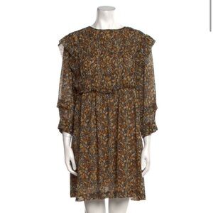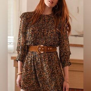 BA&SH Sandra Autumn Leaf Printed Mini Dress in Brown/Orange Multi