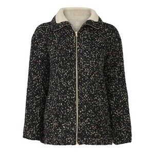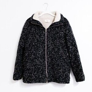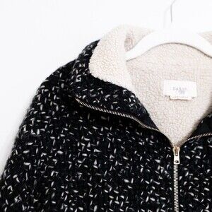 BA&SH Sherpa Shearling Lined Knit Wool Blend Boxy Coat Black White Size Small 6