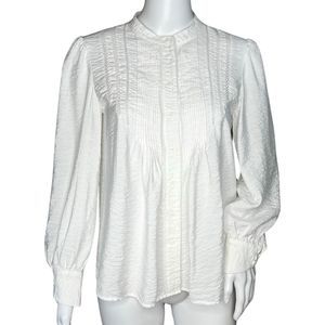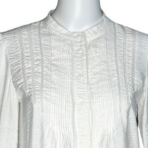 BA&SH Shirt Women 2 White Laura Top Pleat Neckline Button Up Crinkle Minimalist