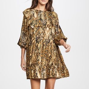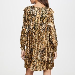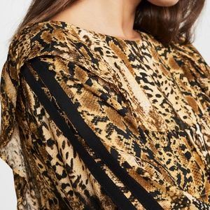 New with tags. BA&Sh Sym dress in Ochre. Snakeskin print and a sporty black band along the sleeves. Round neck, full length sleeves with smocked finish, ruffle trim, and flounce that highlights the front and back yokes. Wear flowing or belted. 100% viscose. BA&SH size chart says their size 1 = US size 4 which I find to be an accurate comparison. Smoke and pet free home.