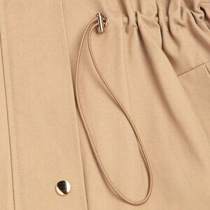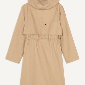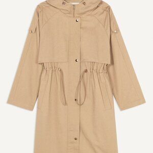 The ba&sh TED trench coat makes a strong statement for autumn. A hybrid between a parka and a trench coat with an oversized design. With trench coat style in an urban spirit, with a very large gun flap that goes down to the waist and very long button tabs on the shoulders. The parka features include a cosy hood with a drawstring, double zip, press-studs, and elasticated waistband to flatter the waist. A trench coat combining beautiful fabric and meticulous details. A beautiful, original and practical coat for a stylish urban look in any weather.