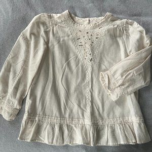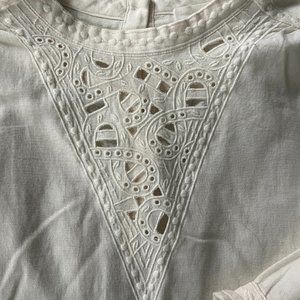 This high quality cotton/linen blend blouse has beautiful stitching and embroidery work. A loose peasant style fit. FR size 1, US size S or 4. Lightly worn, no signs of wear.