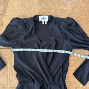 bash, puff sleeve dress, black mini dress, ruffle detail, v neck, xs size, feminine style, party dress, chic outfit, elegant look, little black dress, modern fashion, date night, trendy dress, statement piece