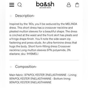 BA&SH XS Melinda Black Puff Sleeve Mini Dress Ruffle V Neck