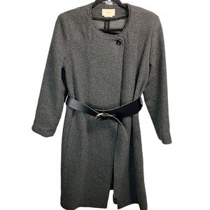 This Gray double-breasted coat with leather applications is very trendy at the moment and is perfect for low temperatures. In addition to being a beautiful piece to have in your dressing room, it contains many pockets that protect your hands from the cold. It has a round neck and a button on the front. It can be accessorized with a beautiful scarf for a trendy and colorful look.