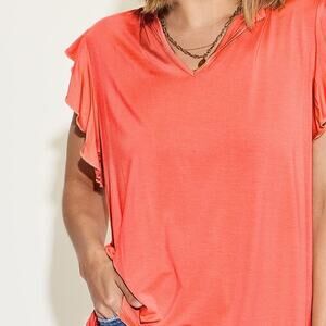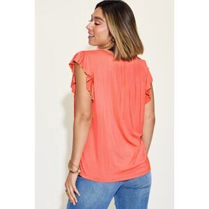 BASIC BAE Coral Bamboo Notched V-Neck Ruffled Short Sleeve Top Misses NEW