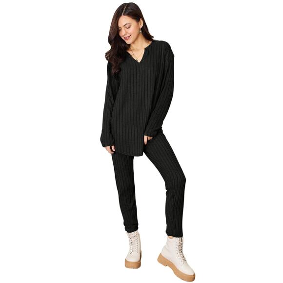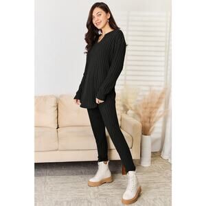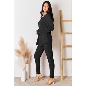 BASIC BAE Plus Black 2 Piece Notched Long Sleeve Top Pants Set Plus Size NEW 3XL