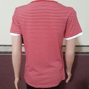 BASIC EDITION RED WHITE STRIPE OVER WHITE CAMI IN FRONT TOP SIZE S NWT