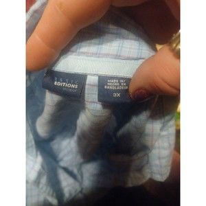 This casual button-up shirt from Basic Editions is a great addition to any wardrobe. The shirt features a check pattern in blue, and is made of woven cotton for a comfortable fit. The short sleeve shirt has a button closure and is designed for a regular fit, with a size of 3XL for big and tall men. The shirt is perfect for a casual occasion and can be worn with jeans or khakis.