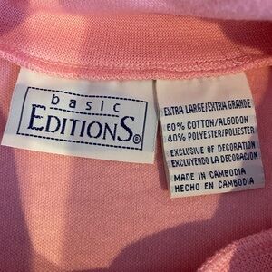 BASIC EDITIONS Women's size XL pink turtleneck stretch floral flower embroidery