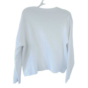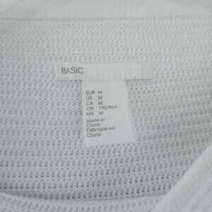 BASIC White Ribbed Long Sleeve Top Medium Women Neutral Casual Knit Shirt