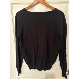 BASIC/BASIQUE Black Knitted V-neck Long Sleeve Sweater Top Sz M