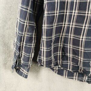 BASICS Men's Plaid Shirt (not flannel) Long Sleeve Collared Navy Blue Size M Slim Fit