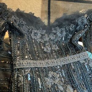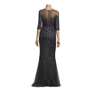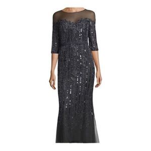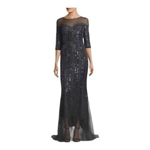 BASIX Black Label mesh embellished gown size 0 in charcoal gray. NWT.