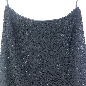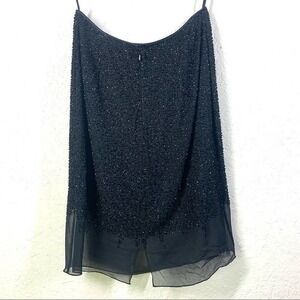 BASIX II Vintage Black Silk Bead Embellished A-Line Skirt