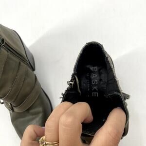 BASKE green gray leather buckle pointed toe booties