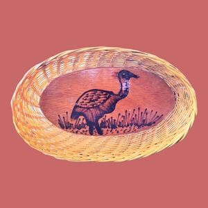 BASKET HAND PAINTED "DOSSA AKAKEO BAMBERT ABDJAN" Crane Type Bird