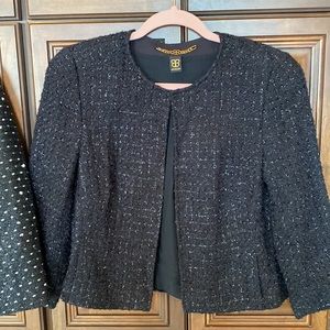 Nice! Maybe vintage. No size tag in the blue/black jacket. Both have two pocket front. Both have shimmer/sparkle. These jackets are gorgeous!!!*
