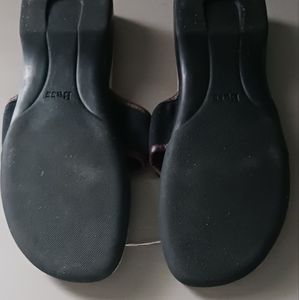 women's canvas and leather rubber heel in between toe sandal