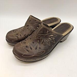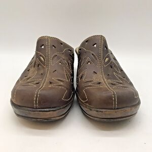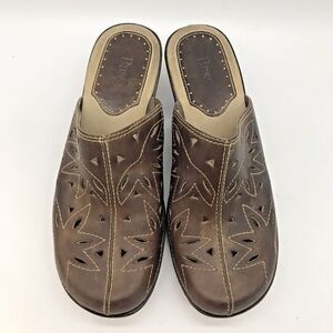BASS Brenda Brown Leather Slip On Clogs Women's 7.5M Perforated Mule Slides Shoe