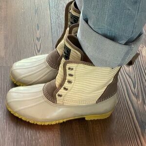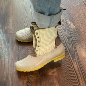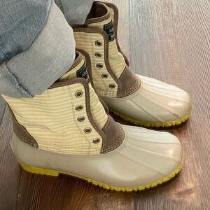 BASS Gray Yellow Stripes Rubber Leather Rain Boots Size 7