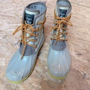 BASS Gray Yellow Stripes Rubber Leather Rain Boots