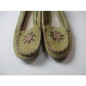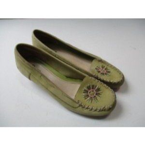 *BASS Green Chartreuse Suede Beaded Moccasin Pump