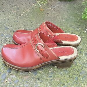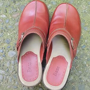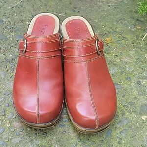 BASS Leona Brown Leather Clogs with Buckle Size 8M