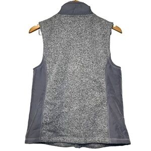 BASS Light Weight Soft Zipper Vest in Light Gray Size Small. In good condition, EUC. Soft center panel with contrasting smooth side panels. Really pretty light marled gray color. Center zipper with side slash pockets. Fuzzy lined neck collar.