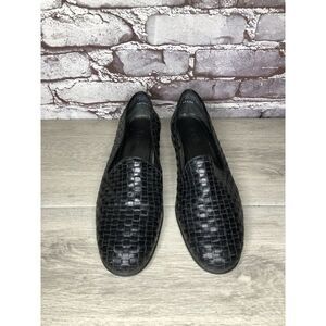 BASS Regina Black Leather Weaves Woven Basket weave Loafers Women Sz 10M US/41EU
