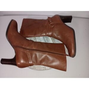 BASS, Tan Block Heel Mid Calf Leather Dress Boot with Ring, Woman Size 9