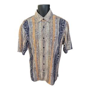 BASSIRI MEN'S CASUAL ABSTRACT SHORT SLEEVE SHIRT. GOLD TAUPE TAN GRAY. 1050