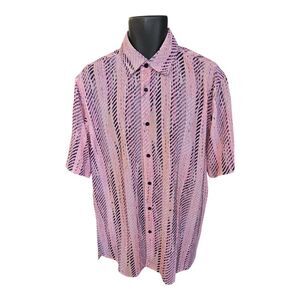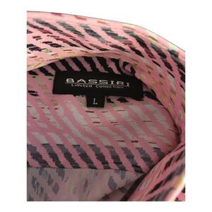 BASSIRI MEN'S CASUAL ABSTRACT SHORT SLEEVE SHIRT. PINK PURPLE IVORY GOLD. 1050