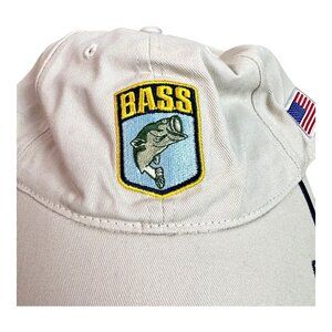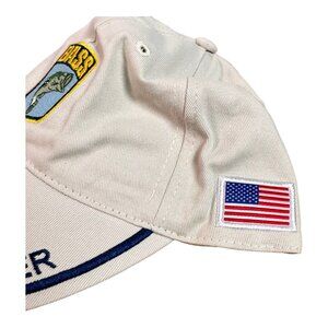 BASSMASTER Baseball Cap Hat Off White Adjustable Strap Back Fishing USA Flag New