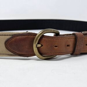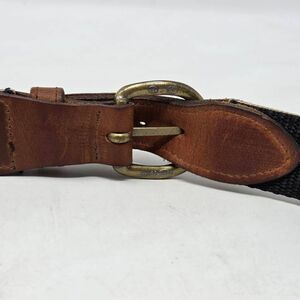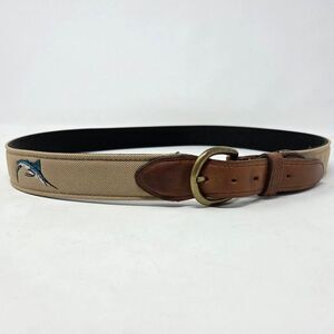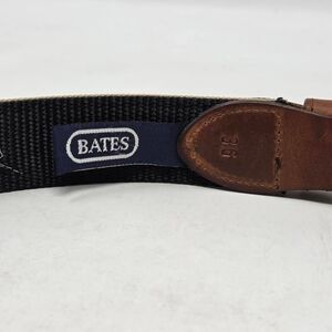 BATES WEB LEATHER BELT BROWN KHAKI HEAVY DUTY BRASS MARLIN FISHING MENS SIZE 36
