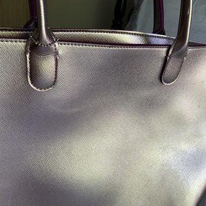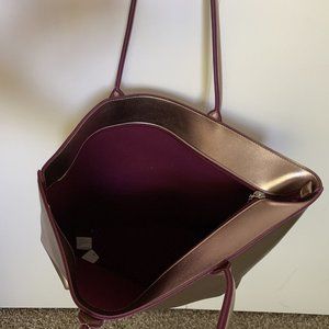 This is a NWOT item. Tote and contrast/ matching mini pouch are in new condition - no wear and tear to be seen great shape. This large tote DOES have a zipper closure.
