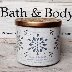 BATH & BODY WORKS 'TWISTED PEPPERMINT' 3-WICK CANDLE 'CALM & BRIGHT'