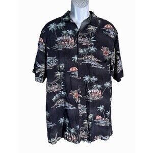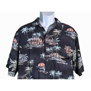 BATIK BAY Men's Short Sleeve Button Down Floral Hawaiian Shirt Black XLT