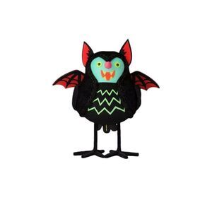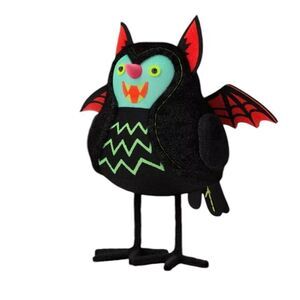 Amp up your Halloween decor with this Felt Bat Bird Halloween Decorative Figurine featuring a freestanding design, this felt bird figurine features a green face with big, round eyes and pointed teeth, red ears and wings with a spiderweb pattern for whimsical bat flair.