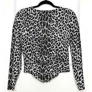 BATSHEVA Snow Leopard Print Tailored Long Sleeve V-Neck Faux Wrap Peplum Top 4